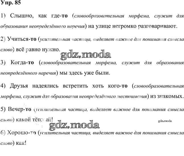 ОТВЕТ на задание № 85 Учебник по Русскому языку 7 класс Быстрова Инновационная школа