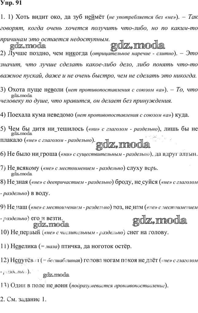 ГДЗ решение к заданию № 91 Русский язык 7 класс Быстрова Е.А. Русское слово 2019 Часть 1, Часть 2 ФГОС бесплатно на гдз.мода!