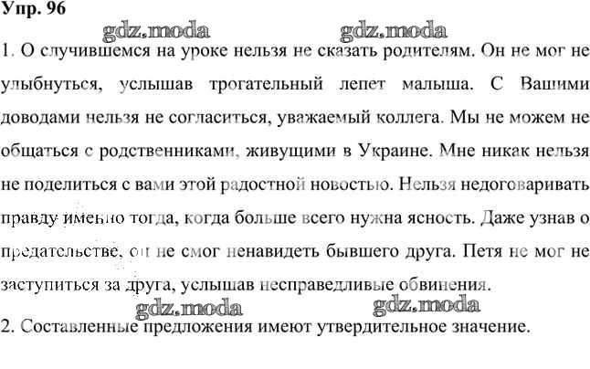 ГДЗ решение к заданию № 96 Русский язык 7 класс Быстрова Е.А. Русское слово 2019 Часть 1, Часть 2 ФГОС бесплатно на гдз.мода!