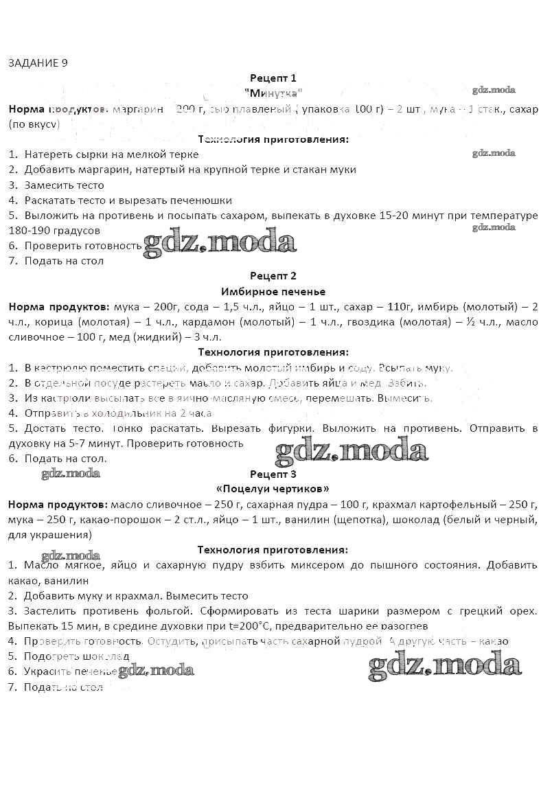 ГДЗ решение к заданию № 9 Технология 7 класс рабочая тетрадь Синица Н.В. Вентана-граф 2014 бесплатно на гдз.мода!