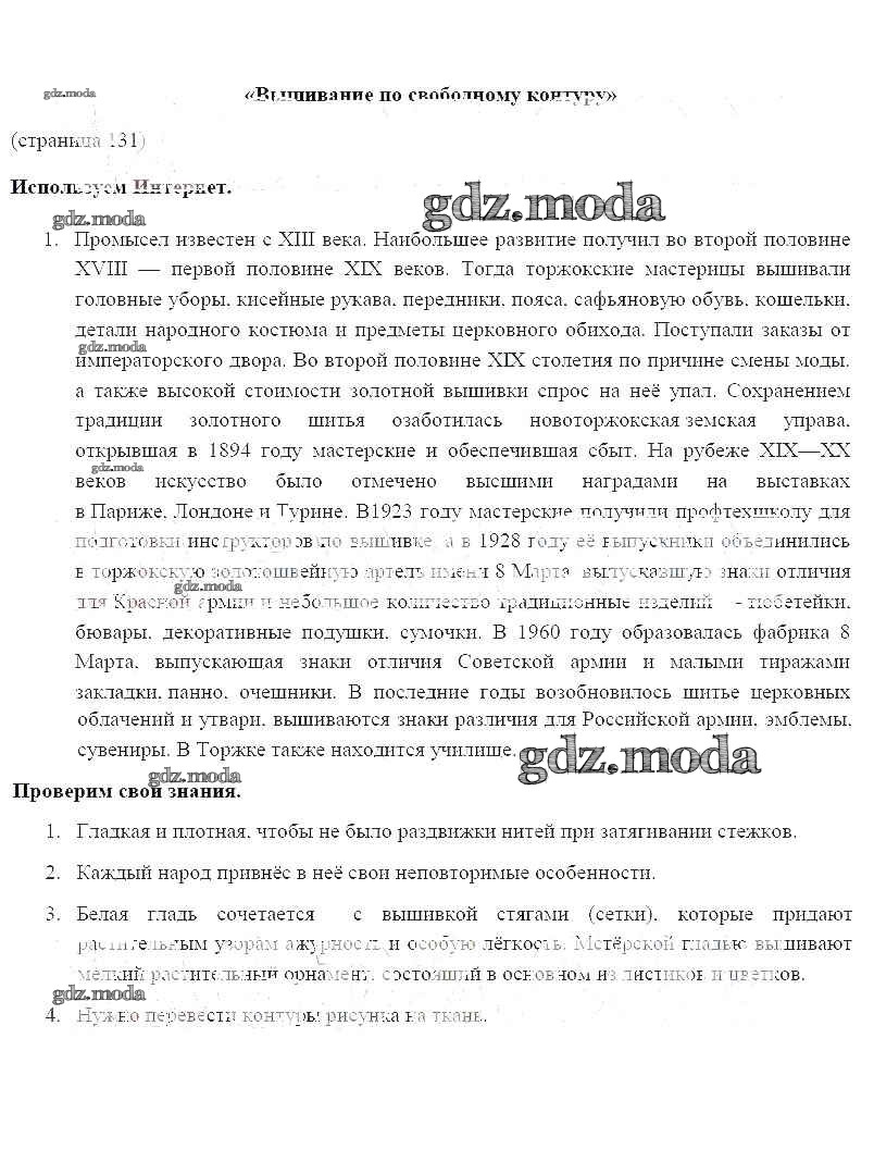 ГДЗ решение к заданию № 131 Технология 7 класс Синица Н.В. Вентана-граф 2018 ФГОС бесплатно на гдз.мода!