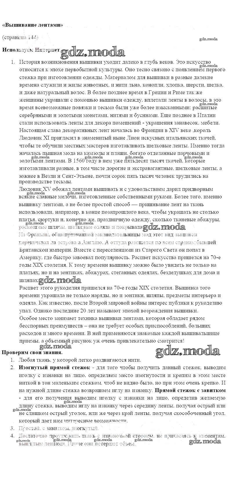 ГДЗ решение к заданию № 144 Технология 7 класс Синица Н.В. Вентана-граф 2018 ФГОС бесплатно на гдз.мода!