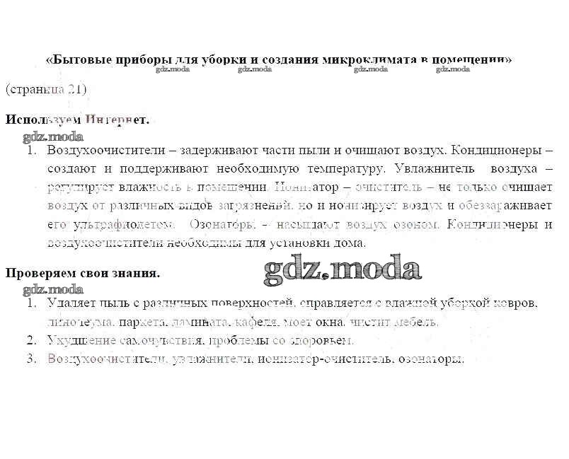 ГДЗ решение к заданию № 21 Технология 7 класс Синица Н.В. Вентана-граф 2018 ФГОС бесплатно на гдз.мода!