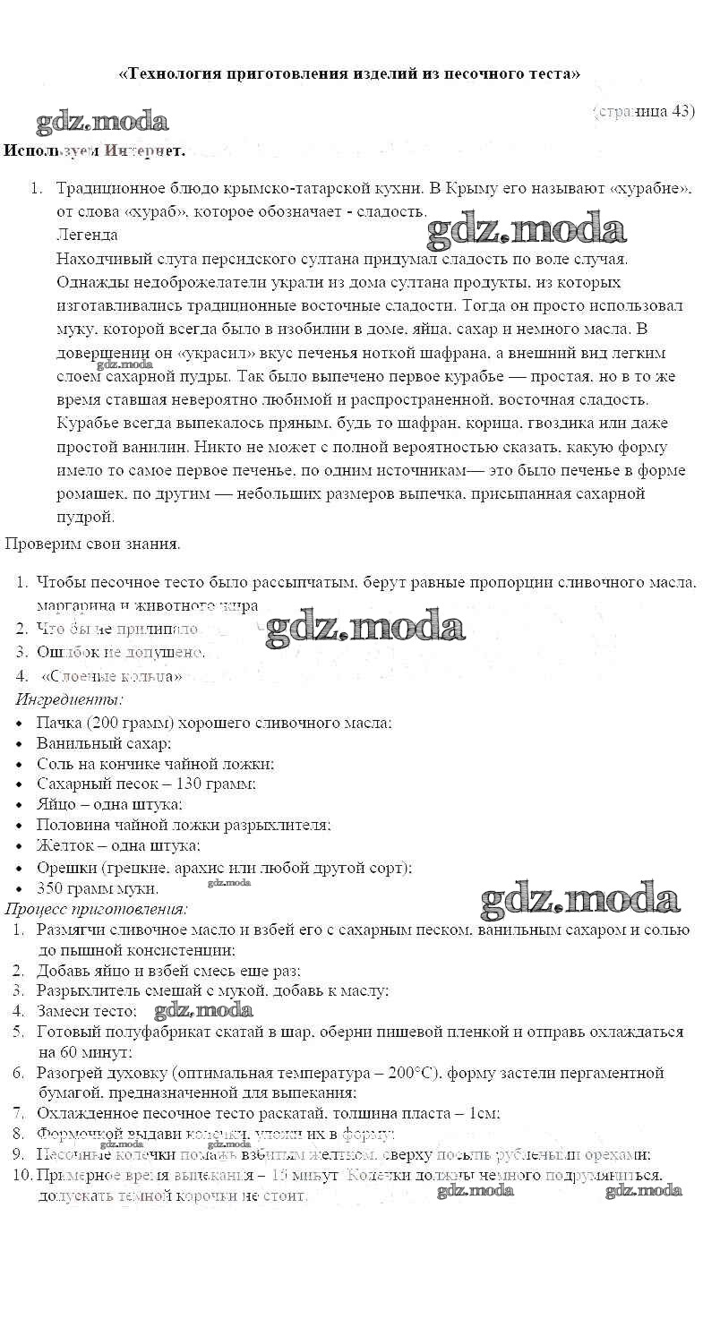 ГДЗ решение к заданию № 43 Технология 7 класс Синица Н.В. Вентана-граф 2018 ФГОС бесплатно на гдз.мода!