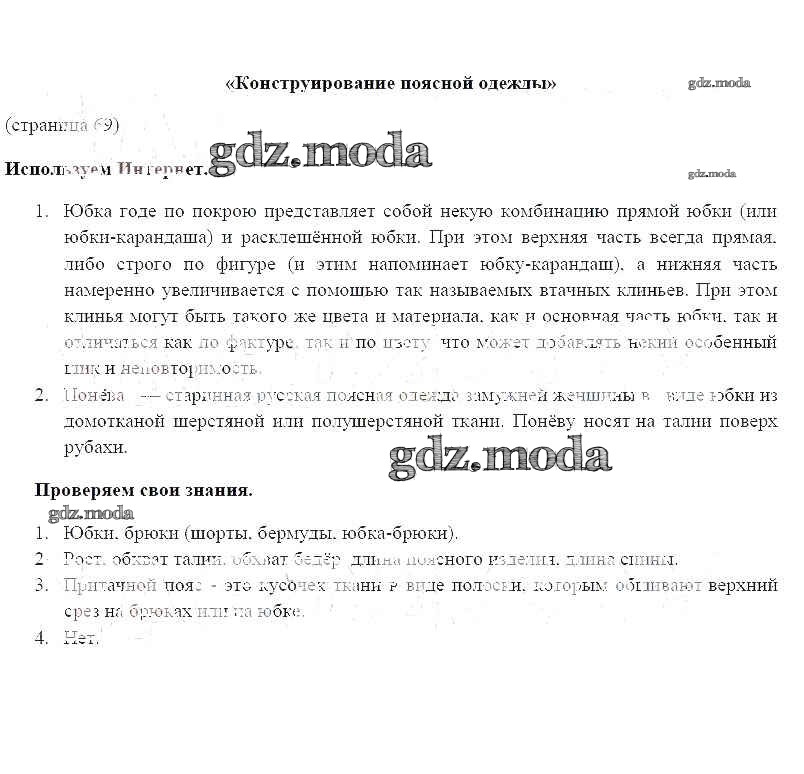 ГДЗ решение к заданию № 69 Технология 7 класс Синица Н.В. Вентана-граф 2018 ФГОС бесплатно на гдз.мода!