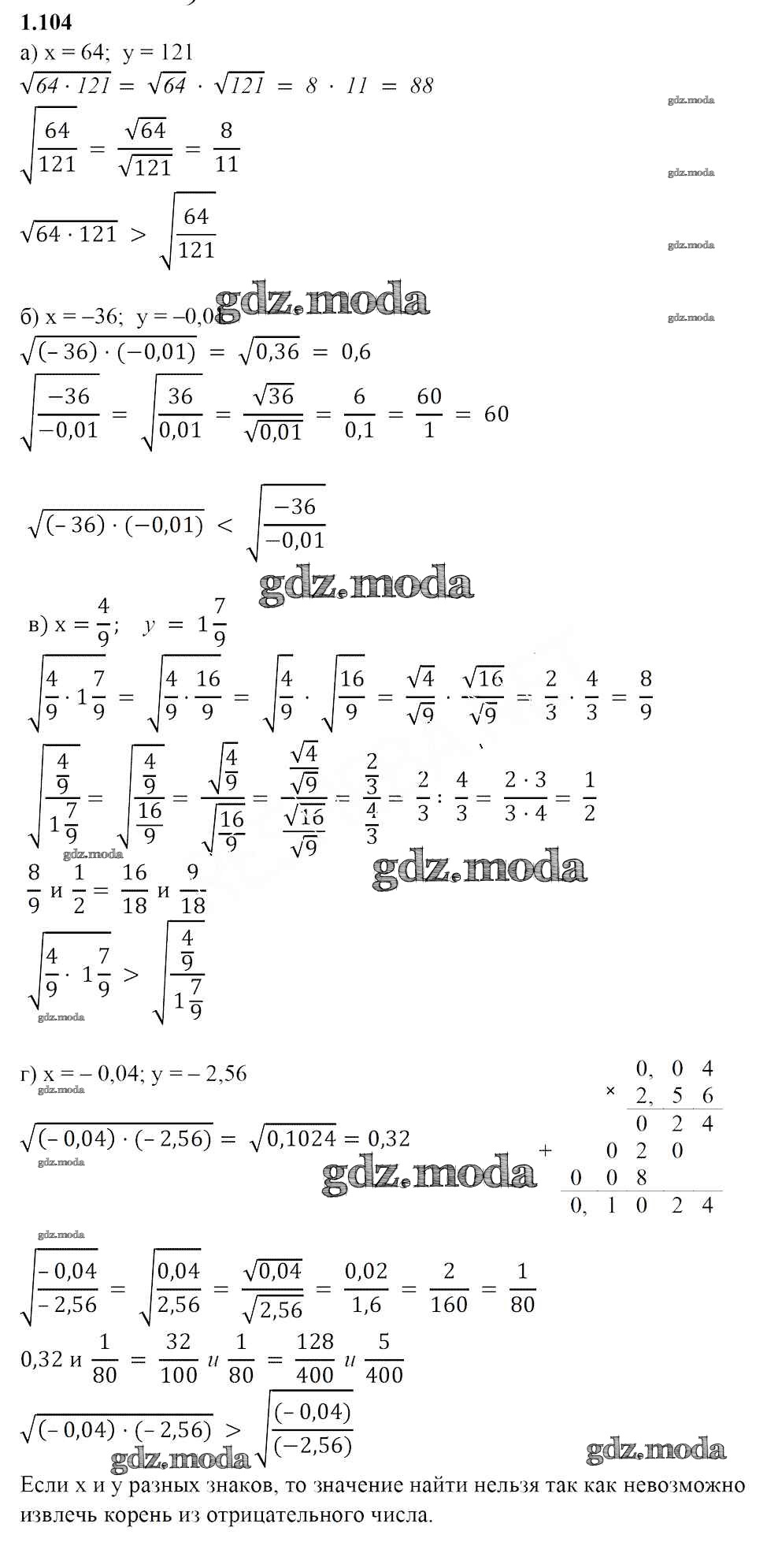 ОТВЕТ на задание № 1.104 Учебник по Алгебре 8 класс Арефьева