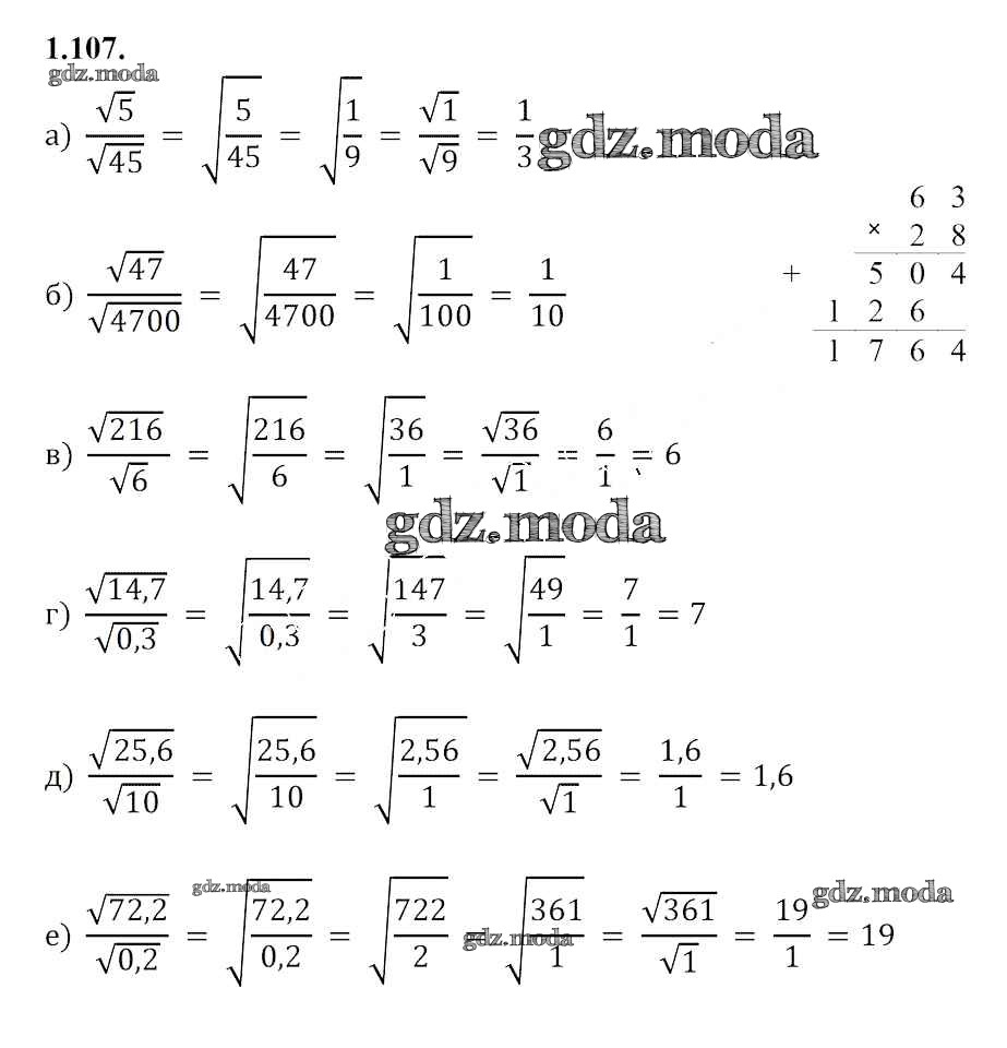 ОТВЕТ на задание № 1.107 Учебник по Алгебре 8 класс Арефьева
