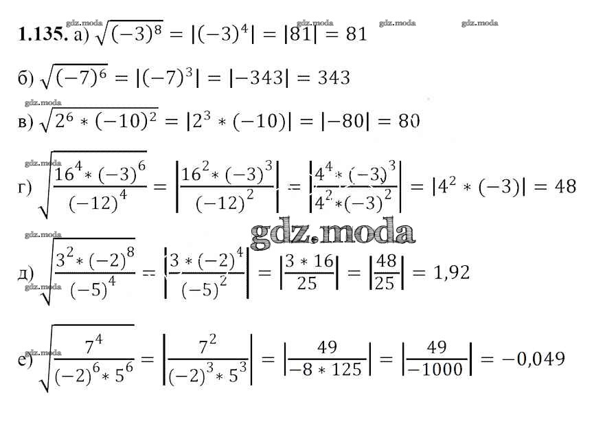 ОТВЕТ на задание № 1.135 Учебник по Алгебре 8 класс Арефьева