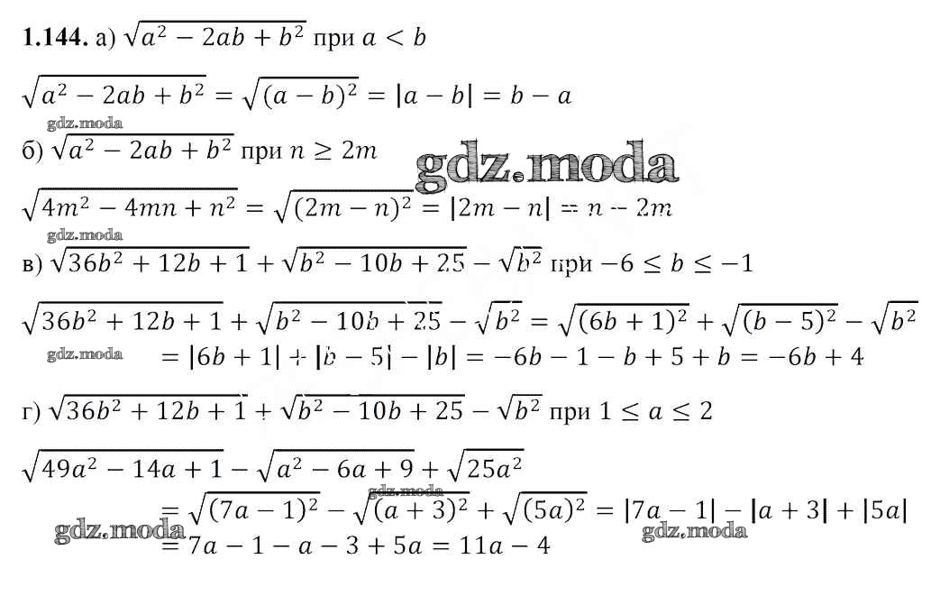 ОТВЕТ на задание № 1.144 Учебник по Алгебре 8 класс Арефьева