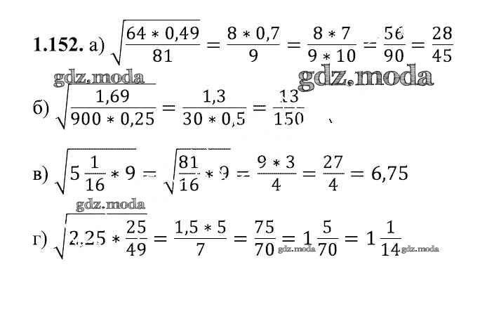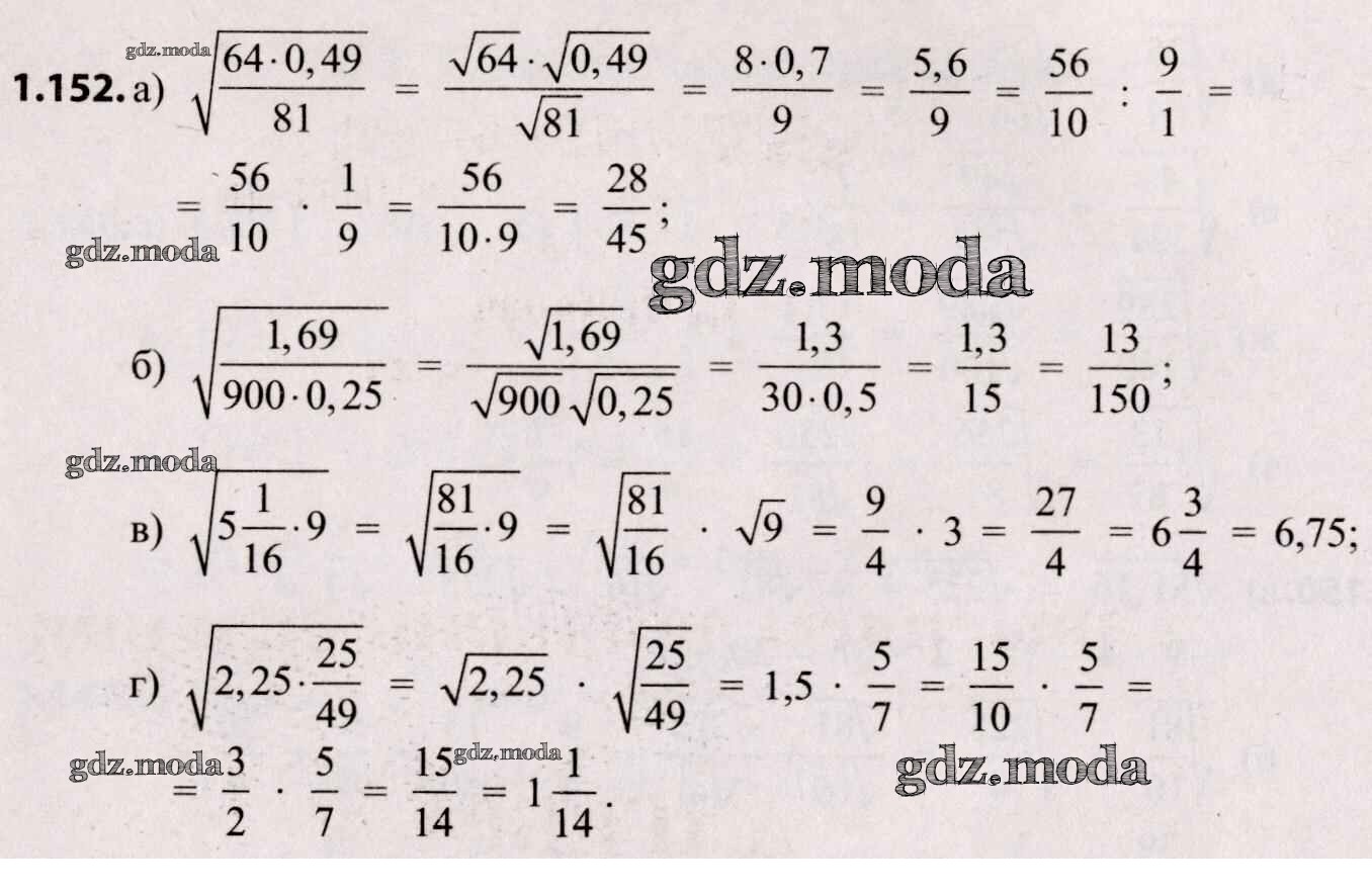 ОТВЕТ на задание № 1.152 Учебник по Алгебре 8 класс Арефьева