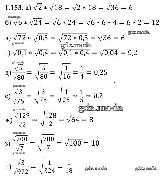 ОТВЕТ на задание № 1.153 Учебник по Алгебре 8 класс Арефьева