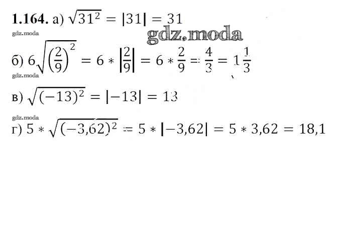 ОТВЕТ на задание № 1.164 Учебник по Алгебре 8 класс Арефьева