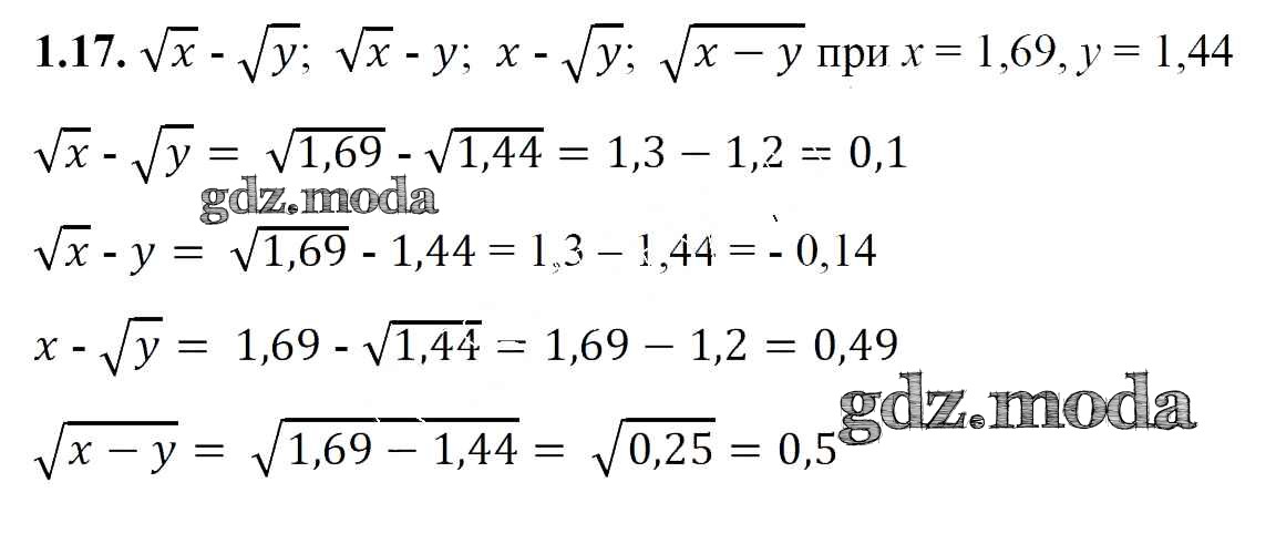 ОТВЕТ на задание № 1.17 Учебник по Алгебре 8 класс Арефьева