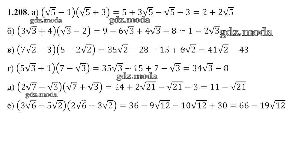 ГДЗ решение к заданию № 1.208 Алгебра 8 класс Арефьева И.Г. Народная асвета 2018 ФГОС бесплатно на гдз.мода!