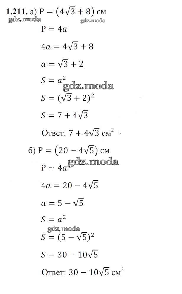 ОТВЕТ на задание № 1.211 Учебник по Алгебре 8 класс Арефьева