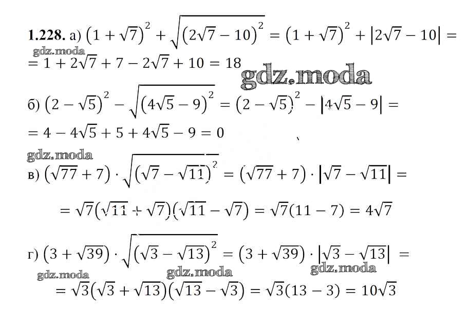 ОТВЕТ на задание № 1.228 Учебник по Алгебре 8 класс Арефьева