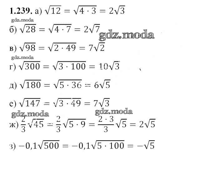 ГДЗ решение к заданию № 1.239 Алгебра 8 класс Арефьева И.Г. Народная асвета 2018 ФГОС бесплатно на гдз.мода!
