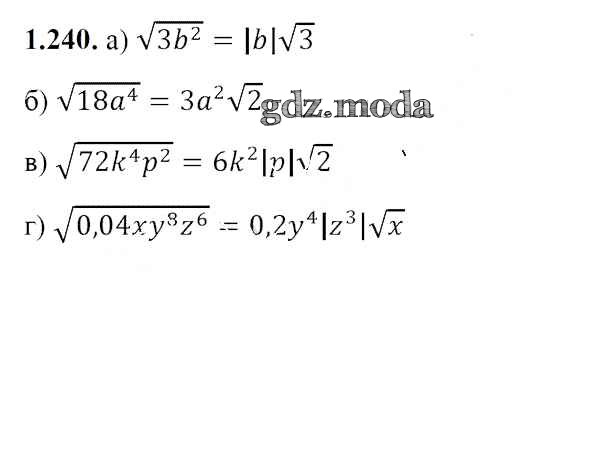 ОТВЕТ на задание № 1.240 Учебник по Алгебре 8 класс Арефьева
