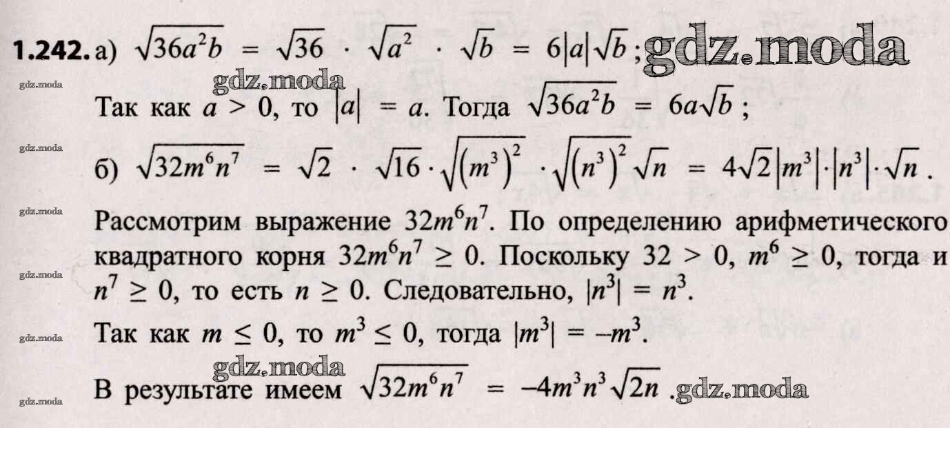 ОТВЕТ на задание № 1.242 Учебник по Алгебре 8 класс Арефьева