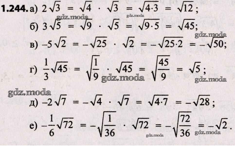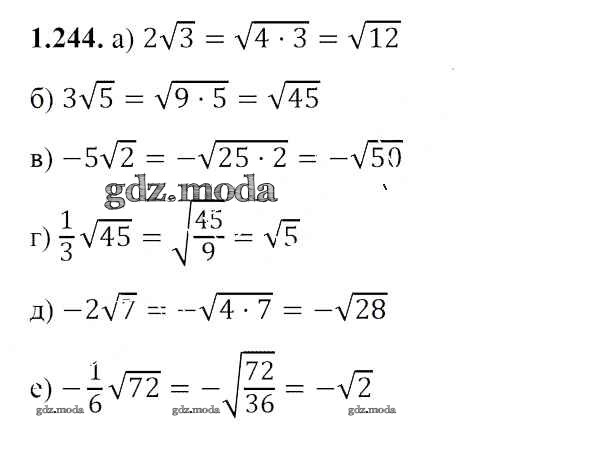 ОТВЕТ на задание № 1.244 Учебник по Алгебре 8 класс Арефьева
