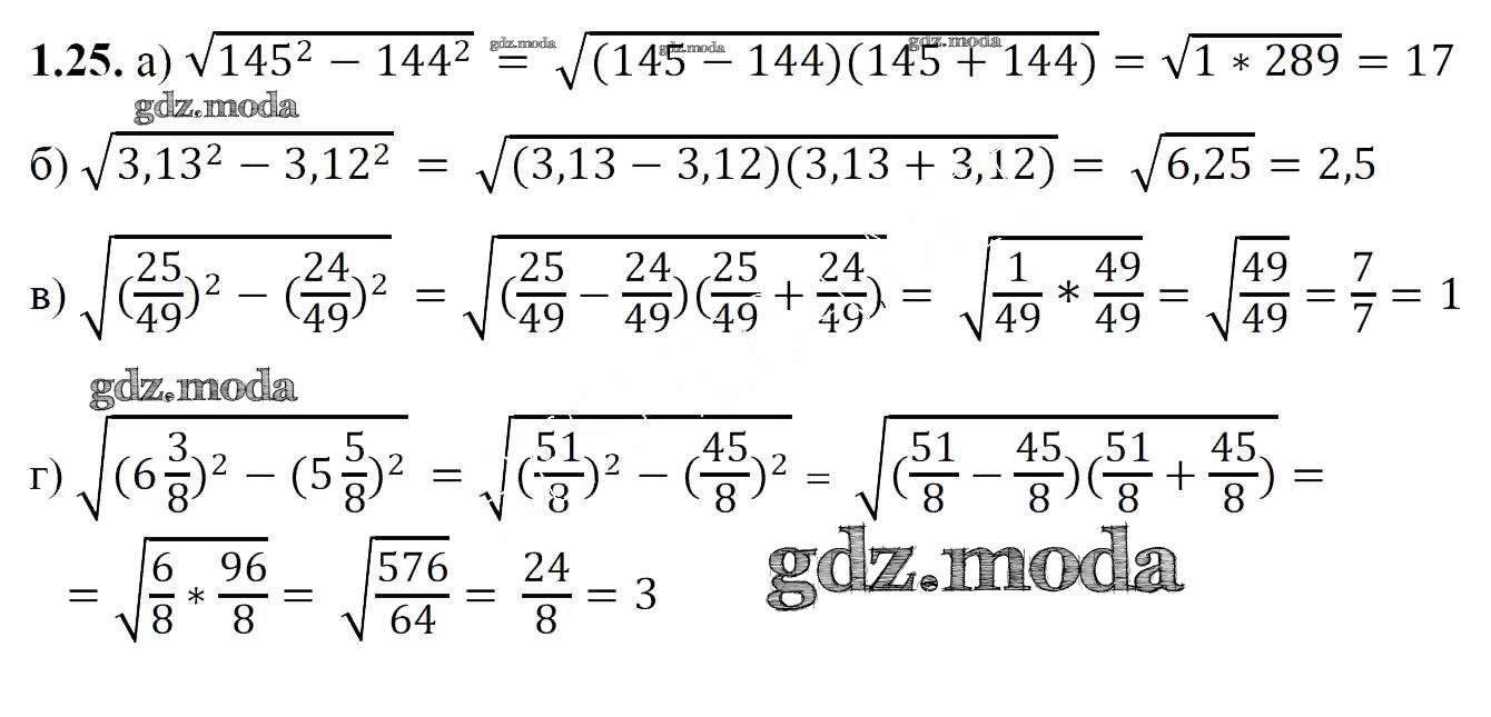 ОТВЕТ на задание № 1.25 Учебник по Алгебре 8 класс Арефьева