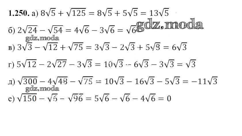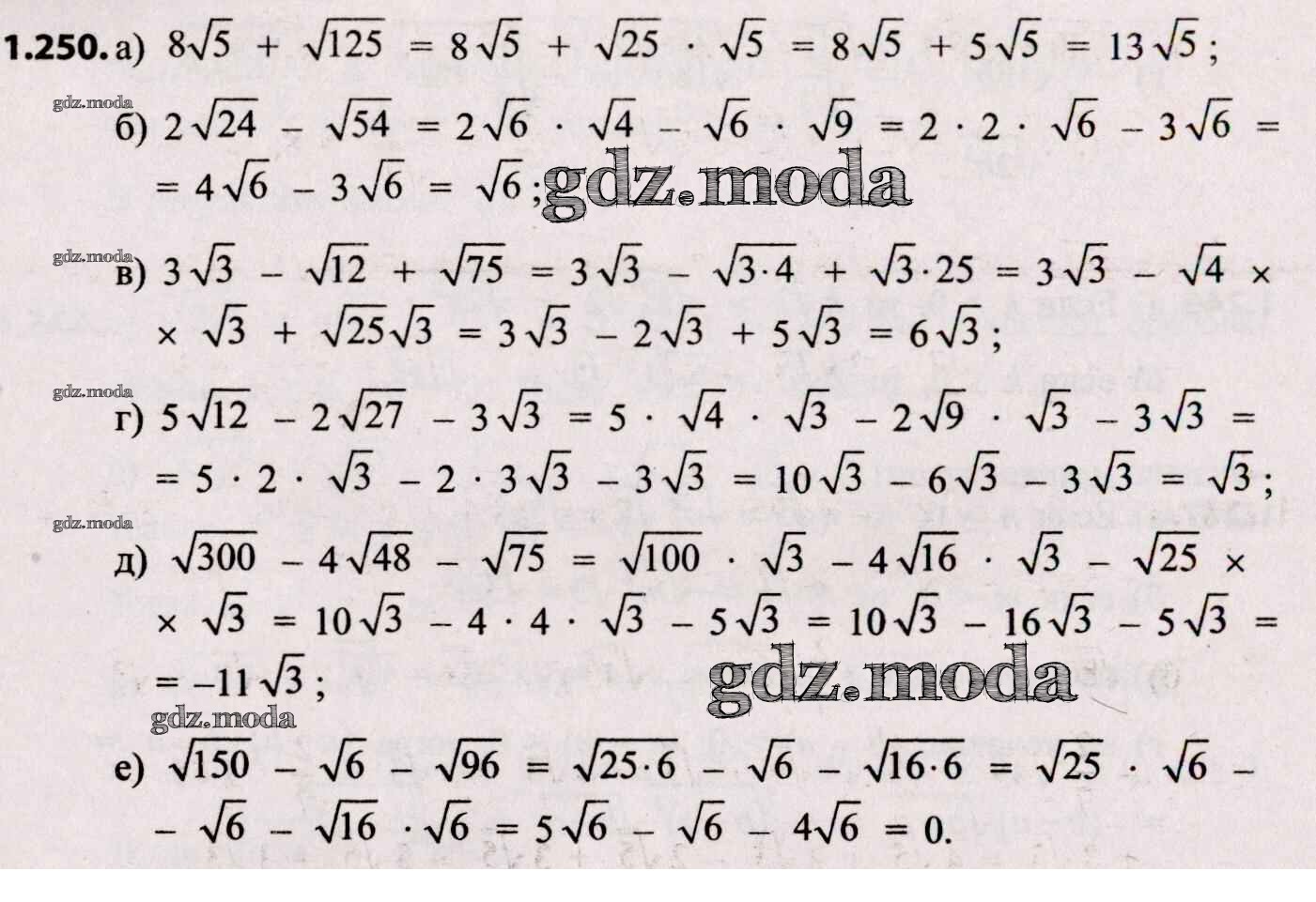 ОТВЕТ на задание № 1.250 Учебник по Алгебре 8 класс Арефьева