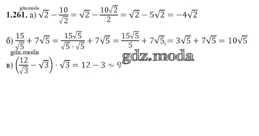 ОТВЕТ на задание № 1.261 Учебник по Алгебре 8 класс Арефьева