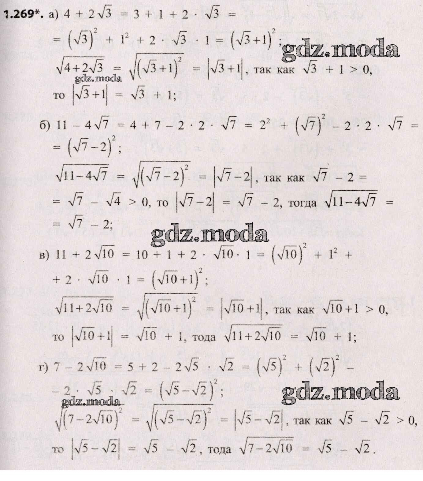 ОТВЕТ на задание № 1.269 Учебник по Алгебре 8 класс Арефьева