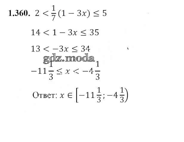 ОТВЕТ на задание № 1.360 Учебник по Алгебре 8 класс Арефьева