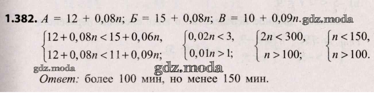 ОТВЕТ на задание № 1.382 Учебник по Алгебре 8 класс Арефьева