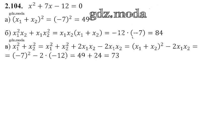 ОТВЕТ на задание № 2.104 Учебник по Алгебре 8 класс Арефьева