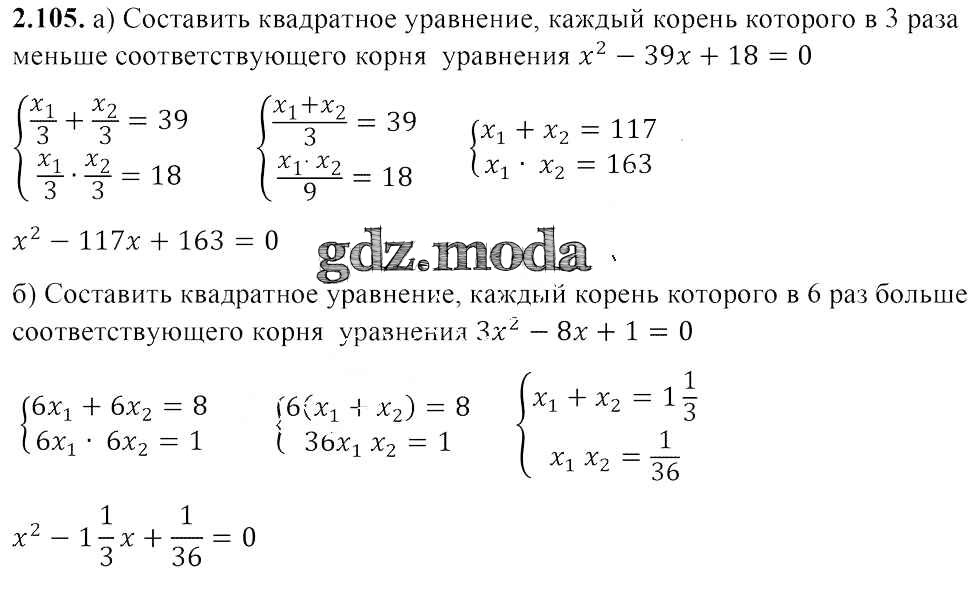 ОТВЕТ на задание № 2.105 Учебник по Алгебре 8 класс Арефьева