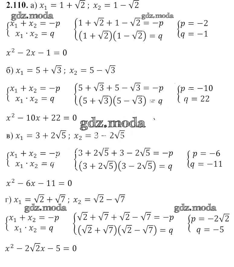 ОТВЕТ на задание № 2.110 Учебник по Алгебре 8 класс Арефьева