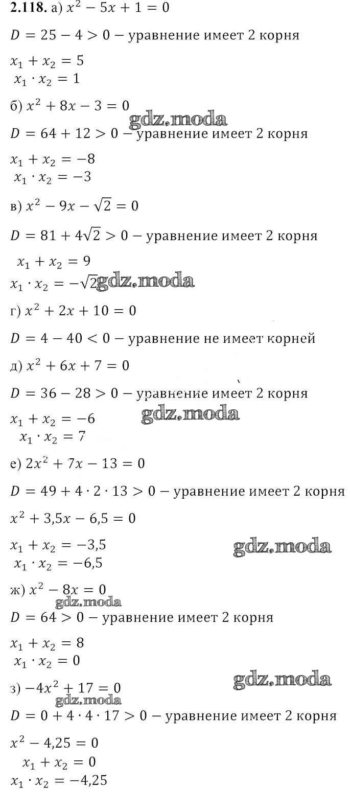 ОТВЕТ на задание № 2.118 Учебник по Алгебре 8 класс Арефьева