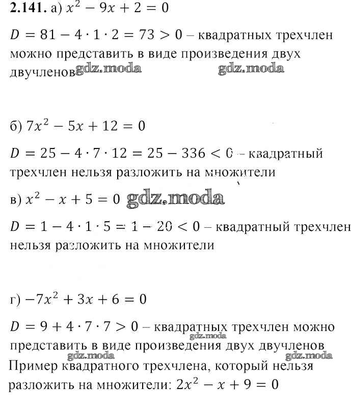 ОТВЕТ на задание № 2.141 Учебник по Алгебре 8 класс Арефьева