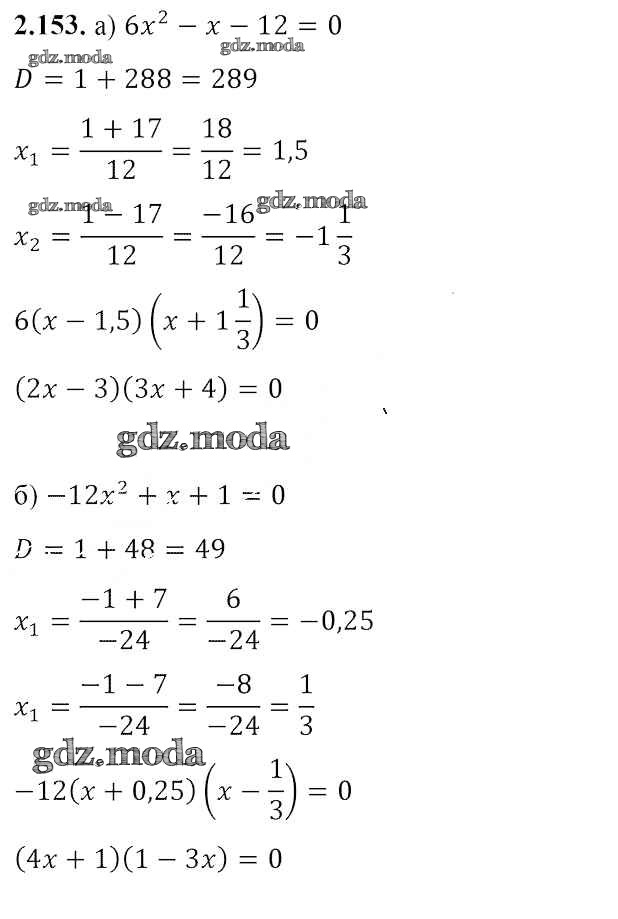 ОТВЕТ на задание № 2.153 Учебник по Алгебре 8 класс Арефьева