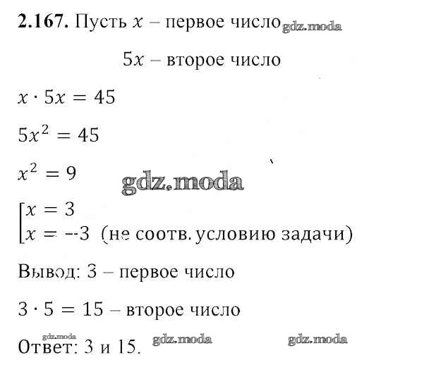 ОТВЕТ на задание № 2.167 Учебник по Алгебре 8 класс Арефьева