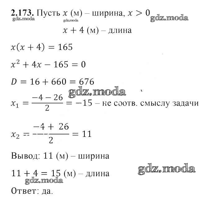 ОТВЕТ на задание № 2.173 Учебник по Алгебре 8 класс Арефьева