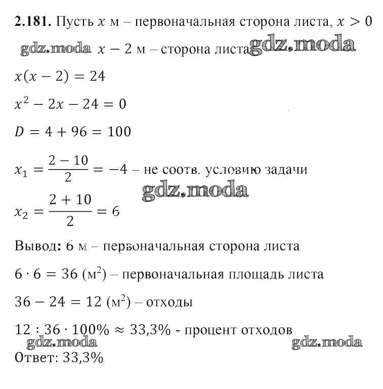 ОТВЕТ на задание № 2.181 Учебник по Алгебре 8 класс Арефьева