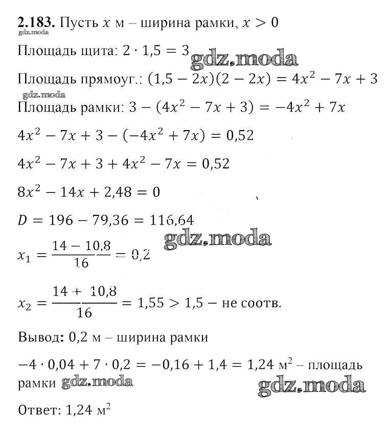 ОТВЕТ на задание № 2.183 Учебник по Алгебре 8 класс Арефьева