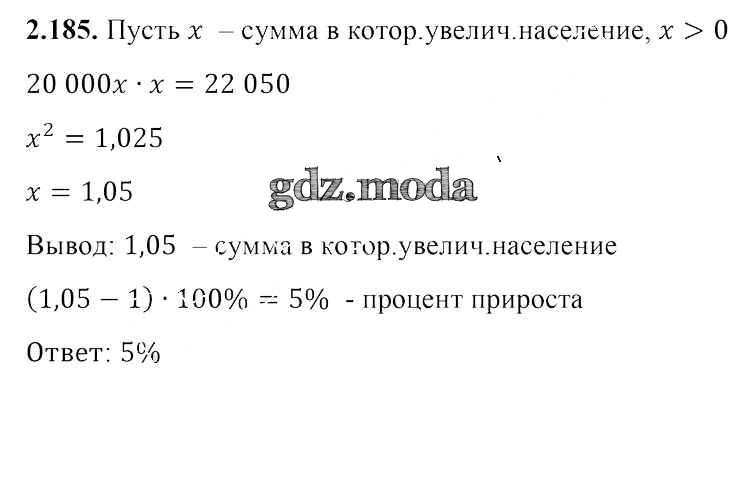 ОТВЕТ на задание № 2.185 Учебник по Алгебре 8 класс Арефьева