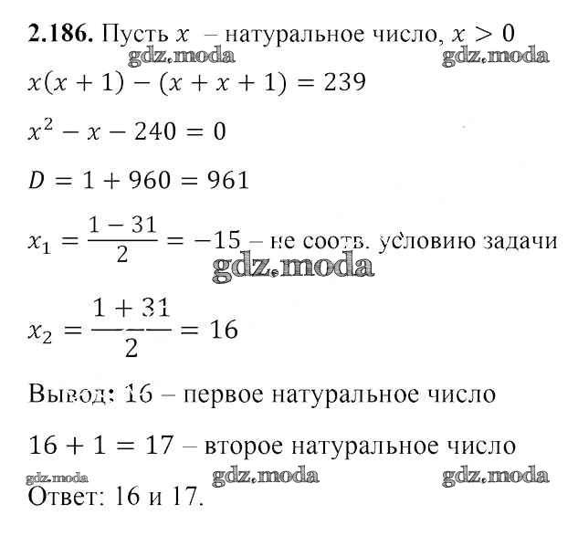 ОТВЕТ на задание № 2.186 Учебник по Алгебре 8 класс Арефьева