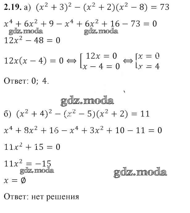 ОТВЕТ на задание № 2.19 Учебник по Алгебре 8 класс Арефьева