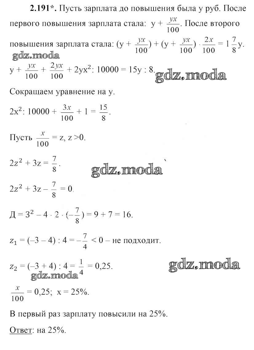 ОТВЕТ на задание № 2.191 Учебник по Алгебре 8 класс Арефьева