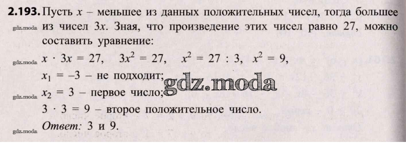ОТВЕТ на задание № 2.193 Учебник по Алгебре 8 класс Арефьева