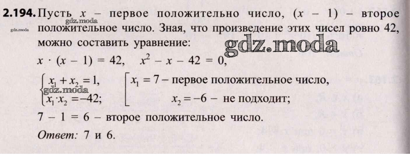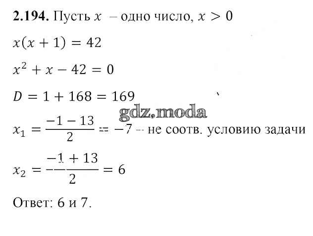 ОТВЕТ на задание № 2.194 Учебник по Алгебре 8 класс Арефьева