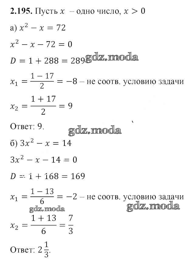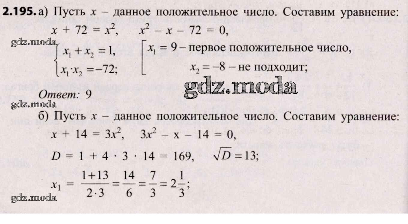 ОТВЕТ на задание № 2.195 Учебник по Алгебре 8 класс Арефьева