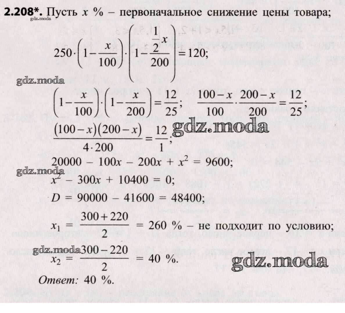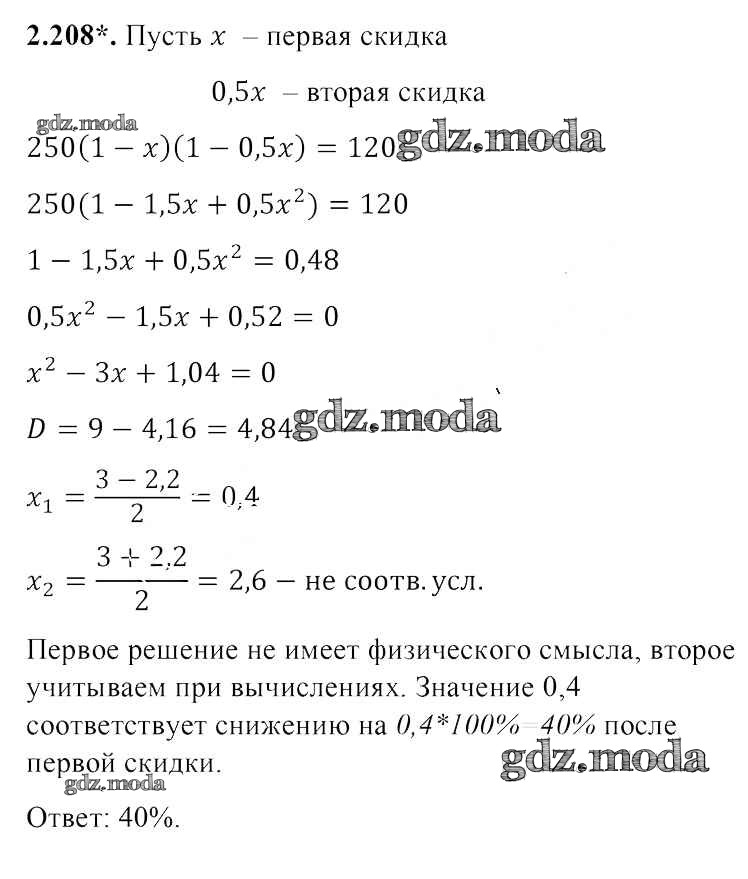 ОТВЕТ на задание № 2.208 Учебник по Алгебре 8 класс Арефьева