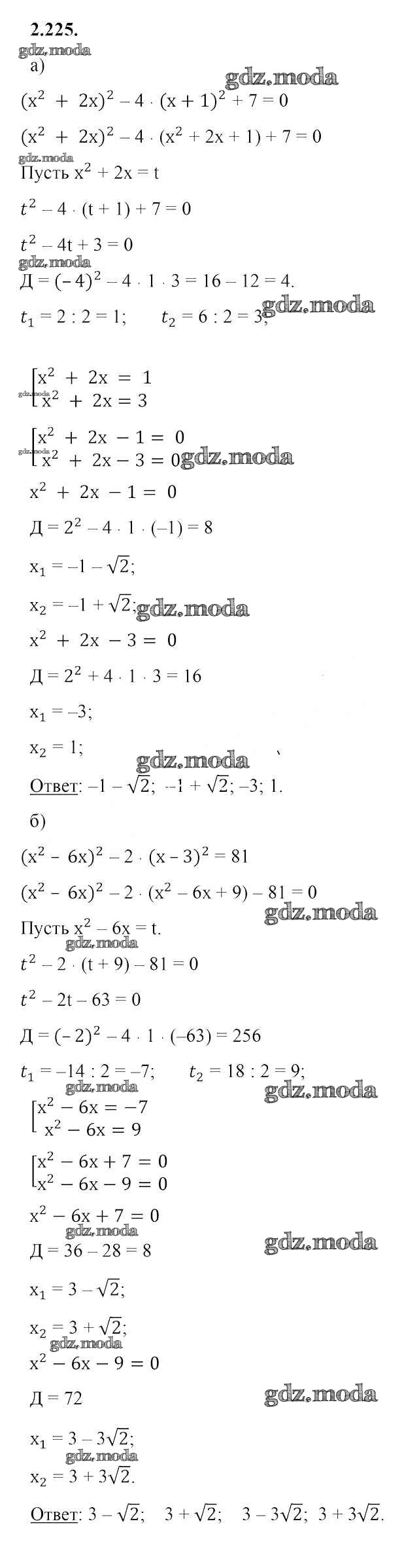 ОТВЕТ на задание № 2.225 Учебник по Алгебре 8 класс Арефьева