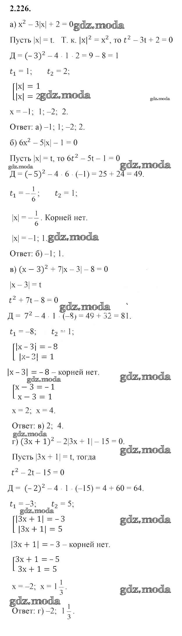 ОТВЕТ на задание № 2.226 Учебник по Алгебре 8 класс Арефьева